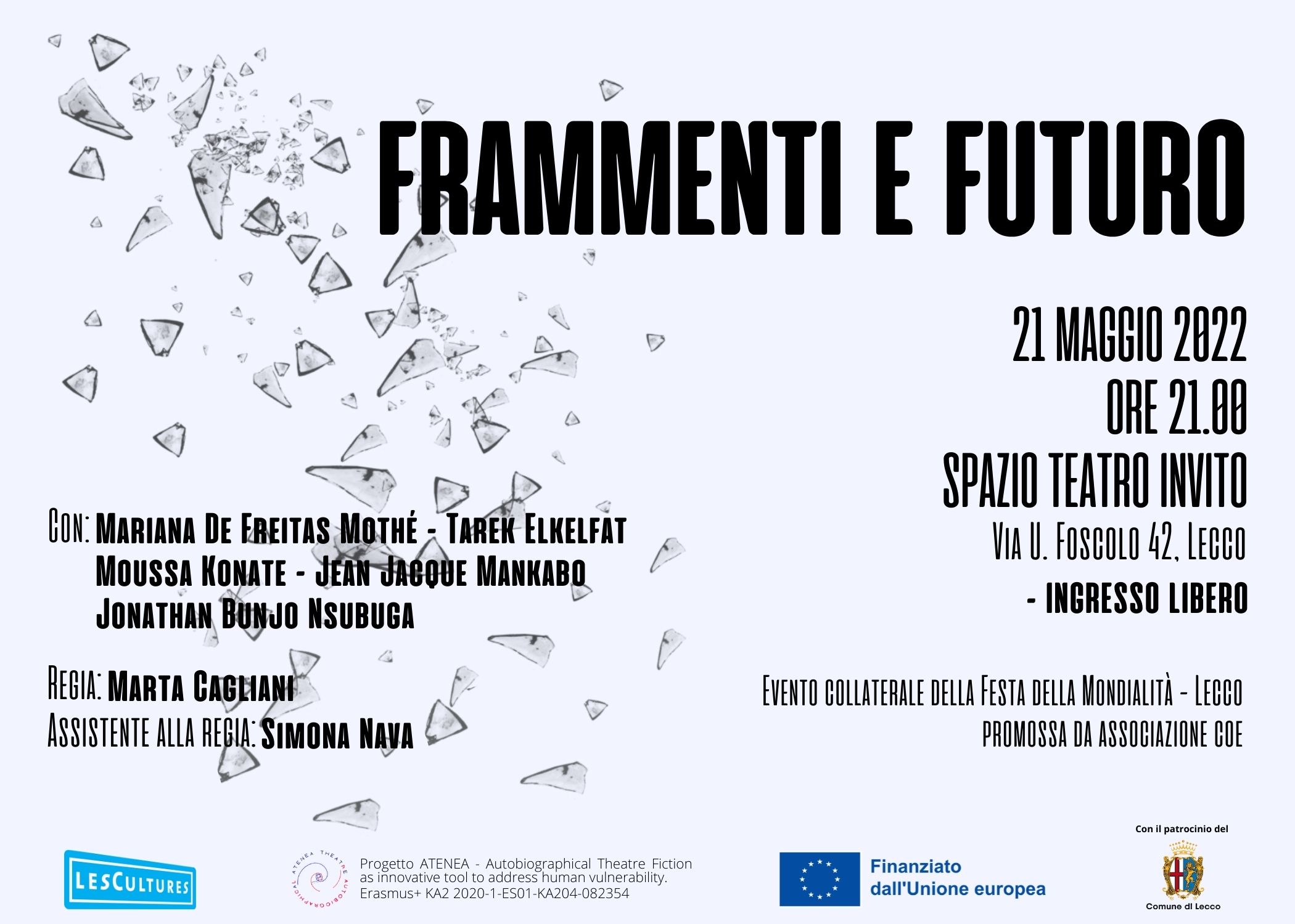 Les Cultures vi invita allo spettacolo di teatro autobiografico Frammenti e futuro realizzato nell’ambito del progetto Erasmus+ ATENEA – Autobiographical Theatre Fiction as Innovative Tool to address Human Vulnerability.